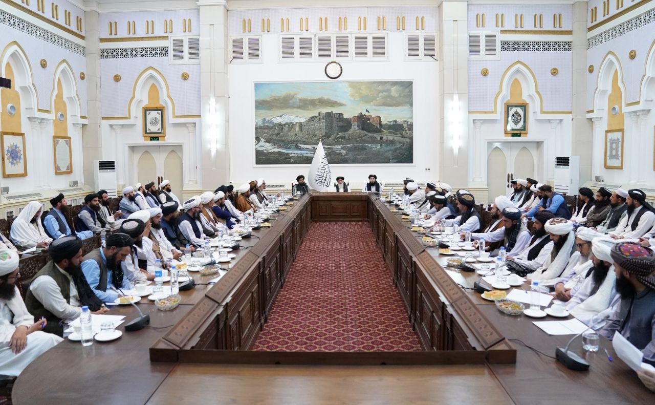 محترم داکتر ملا عبدالواسع رئیس عمومی دفتر مقام ریاست الوزراء امارت اسلامی افغانستان عصر امروز با علماء و خطیبان مساجد ۲۲ ناحیه شهر کابل در قصر چهار چنار ارگ دیدار نمود.