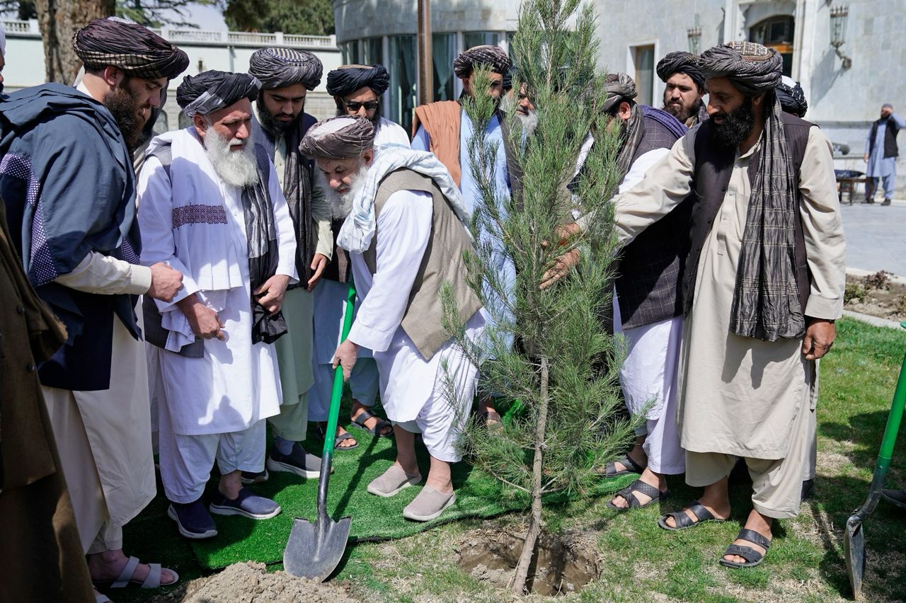 محترم الحاج ملا محمد حسن آخند رئیس الوزراء امارت اسلامی افغانستان قبل از ظهر امروز به مناسبت فرارسیدن بهار سال ۱۴۰۴ هجری شمسی، یک اصله نهال را در چمن قصر گلخانه ارگ غرس نمود.