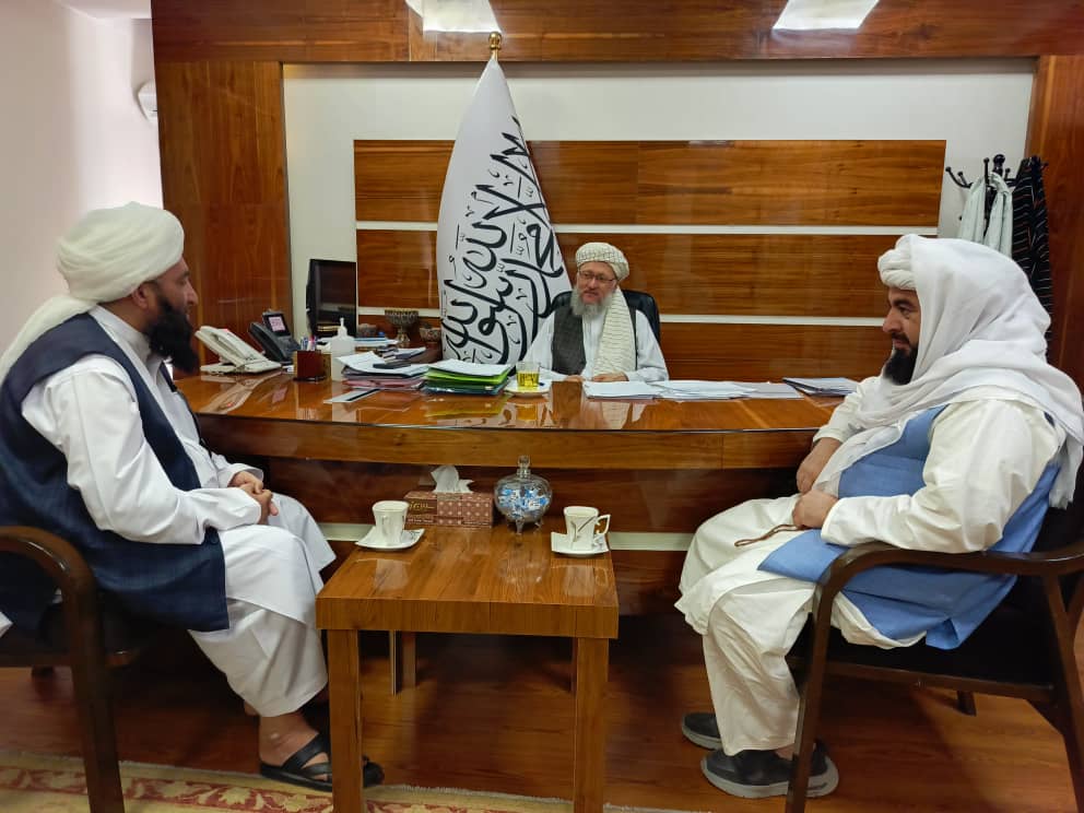 د افغانستان اسلامي امارت د ریاست الوزراء اداري مرستیال محترم مولوي عبدالسلام حنفي د ارشاد، حج او اوقافو وزارت له مسلکي معین محترم شیخ زرمحمد حقاني سره وکتل.