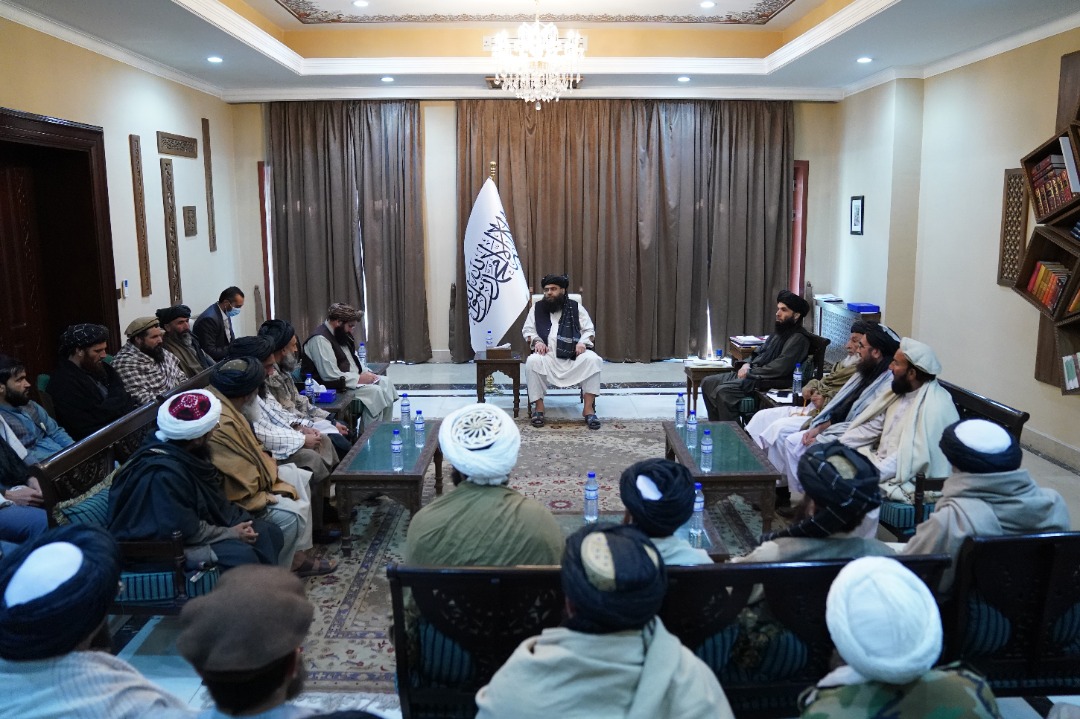 د افغانستان اسلامي امارت د رئیس الوزرا مرستیال مولوي عبدالکبیر نن غرمه د ننګرهار، لغمان، پروان او کاپیسا ولایتونو له یو شمېر دیني علماو، مخورو او سپین ږیرو سره د کتنې پر مهال په بېلابېلو برخو کې د دوی ستونزې، غوښتنې او وړاندیزونه واورېدل. په دغه کتنه کې چې په سپیدار ماڼۍ کې وشوه، په پیل کې یادو مشرانو له خلکو سره د اسلامي امارت نېک چلند وستایه، د امنیت د ټینګښت او عدالت د تامین په برخه کې د اسلامي امارت د مسوولینو د لازیاتې پاملرنې غوښتنه وکړه. د افغانستان اسلامي امارت د رئیس الوزرا مرستیال مولوي عبدالکبیر یادو دیني علماو، مخورو او سپین ږیرو ته د ښه راغلاست ترڅنګ وویل، اړوندو ادارو ته به د دوی د ستونزو، غوښتنو او وړاندیزونو د حل په اړه لازمې لارښوونې وکړي.