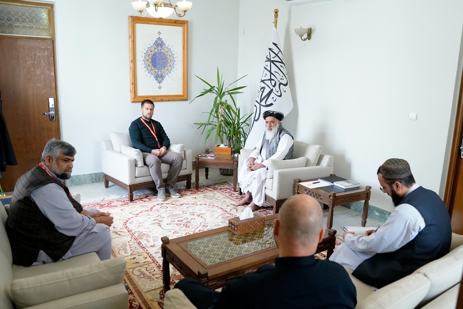 د افغانستان اسلامي امارت د ریاست الوزراء مقام د دفتر لوی رئیس محترم الحاج ډاکټر ملا عبدالواسع نن له غرمې مخکې د بیړني غبرګون او پراختیا سیمه ییز رئیس ښاغلي دانییلي جیاکومیني په مشرۍ د ایمرجنسي سازمان پلاوي سره چې په افغانستان کې د ایمرجنسي سازمان رئیس ښاغلی دیان پانیچ،او د هلمند ولایت د لښکرګاه د ایمرجنسي روغتون مشر جراح ډاکټر خوشحال هم ورسره مل وو، په ارګ کې وکتل.