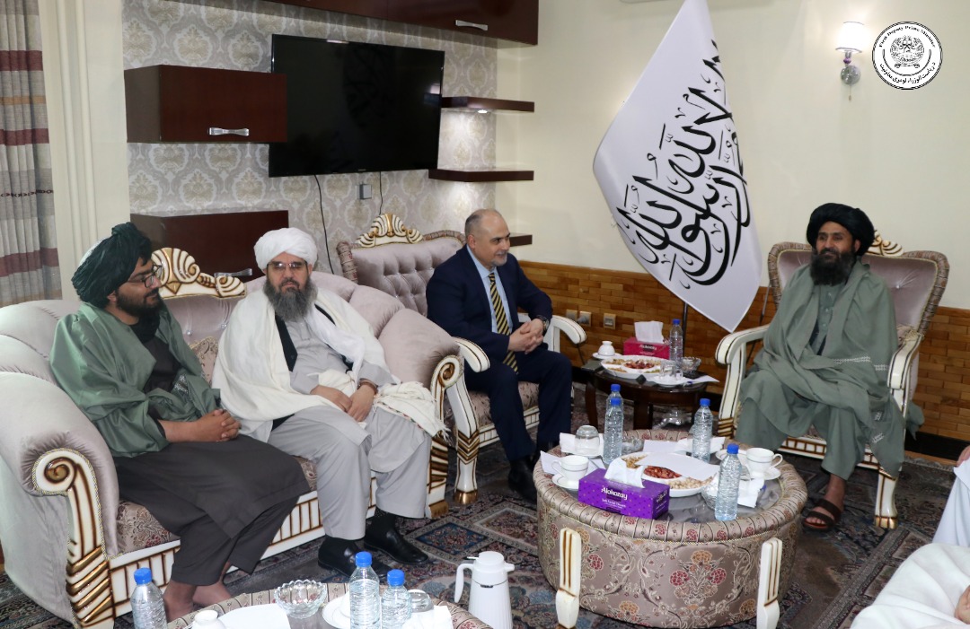د افغانستان اسلامي امارت د ریاست الوزرا اقتصادي مرستیال محترم ملا عبدالغني برادر اخوند نن د بشري او پرمختیایي پروژو افغان متخصص سلطان مسعود دقیق سره په خپل کاري دقتر کې وکتل.