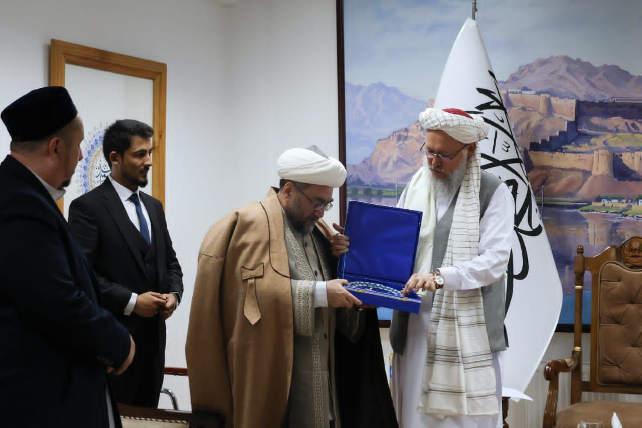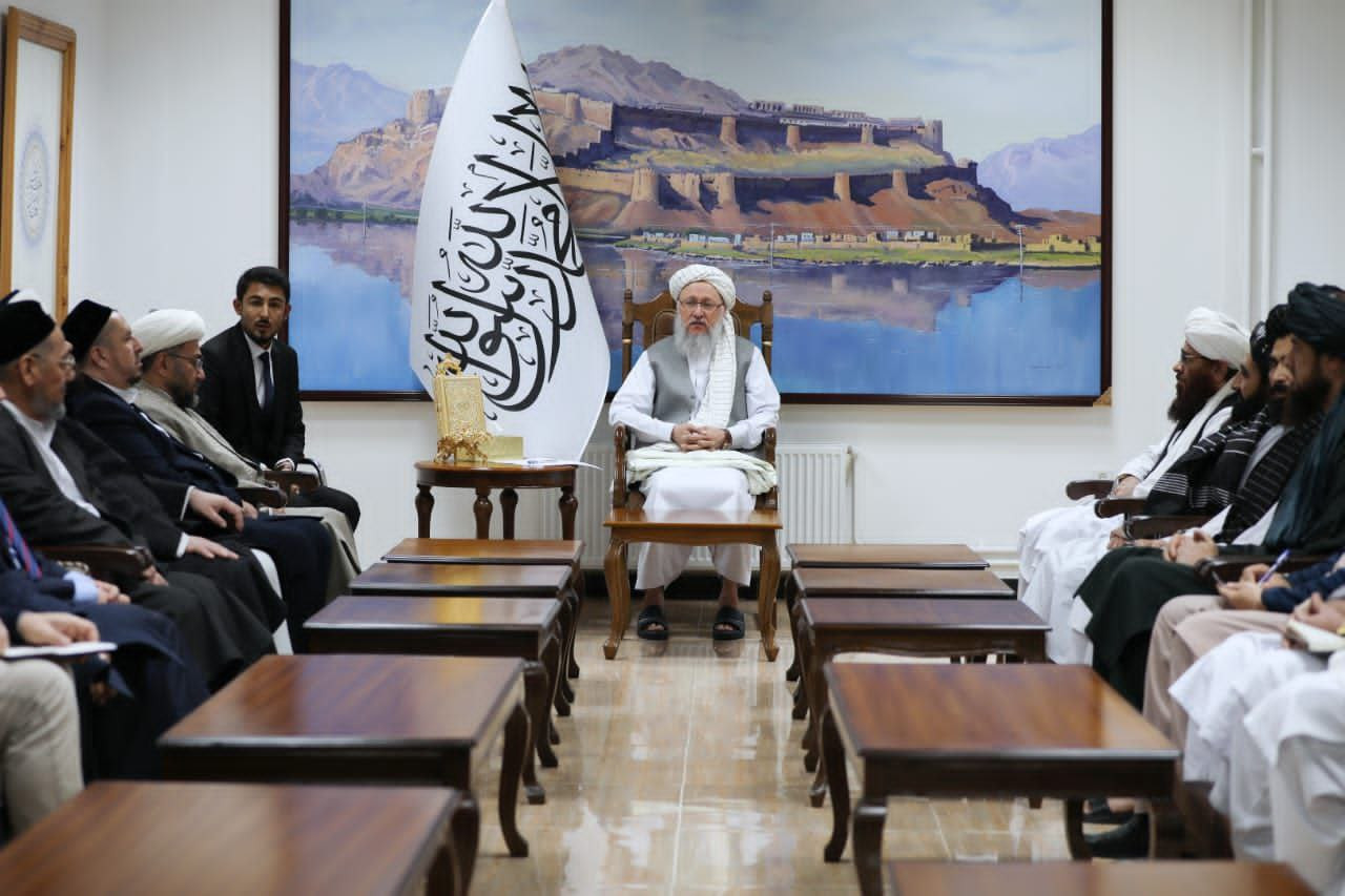 افغانستان اسلام امیرلیگی ریاست الوزراء اداری اورین باسری حرمتلی مولوی عبدالسلام حنفی بوگون توشدن سونگ ارشاد، حج و اوقاف وزیرلیگی سرپرستی حرمتلی شیخ القرآن و الحدیث مولوی نور محمد ثاقب حضوریده ازبکستان عالملر یوقاری مرتبهلی هیاتی بیلن اوچرهشدی.